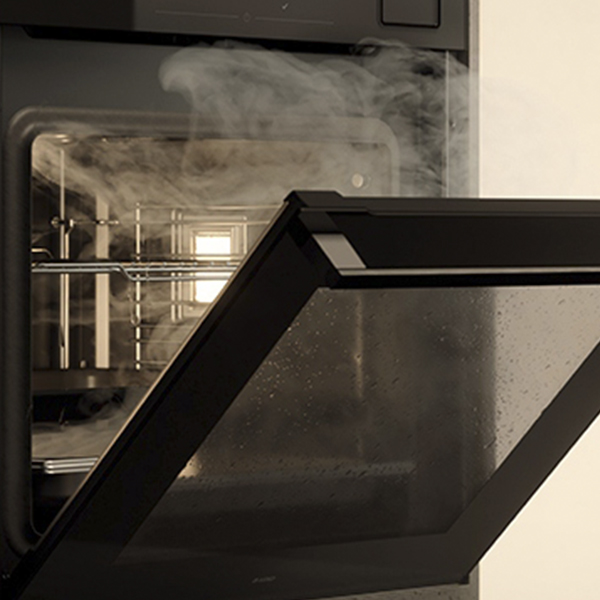 Рекомендуется проводить очистку после приготовления пищи. Предустановленный температурный режим делает процедуру очистки паром предельно простой. Налейте воду в глубокий противень и поместите его на нижний уровень духовки. Через 30 минут загрязнения на поверхности эмали размягчатся, и легко удалятся влажной тканью.